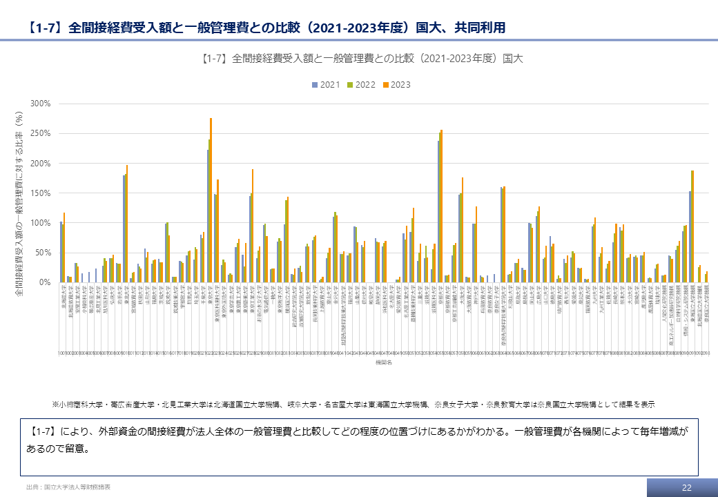 - 間接経費比率:間接経費受入額/直接経費受入額
