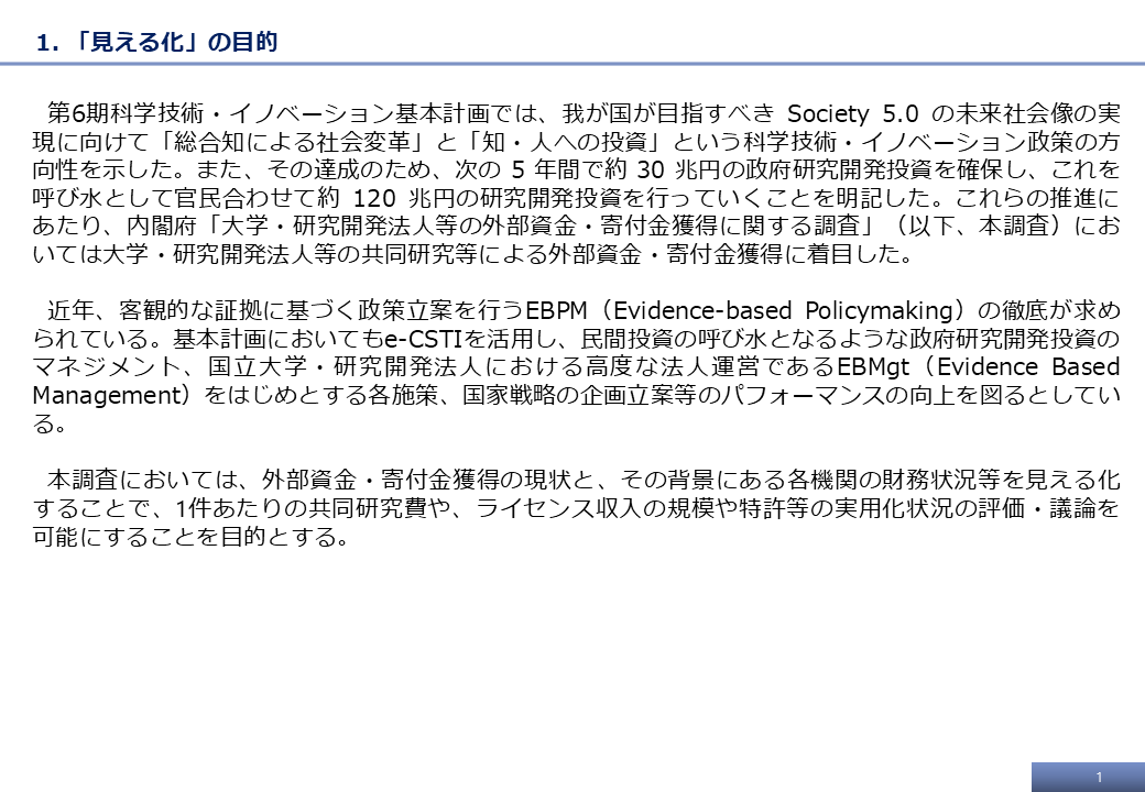 - 大学・研究開発法人等の外部資金・寄付金獲得の見える化